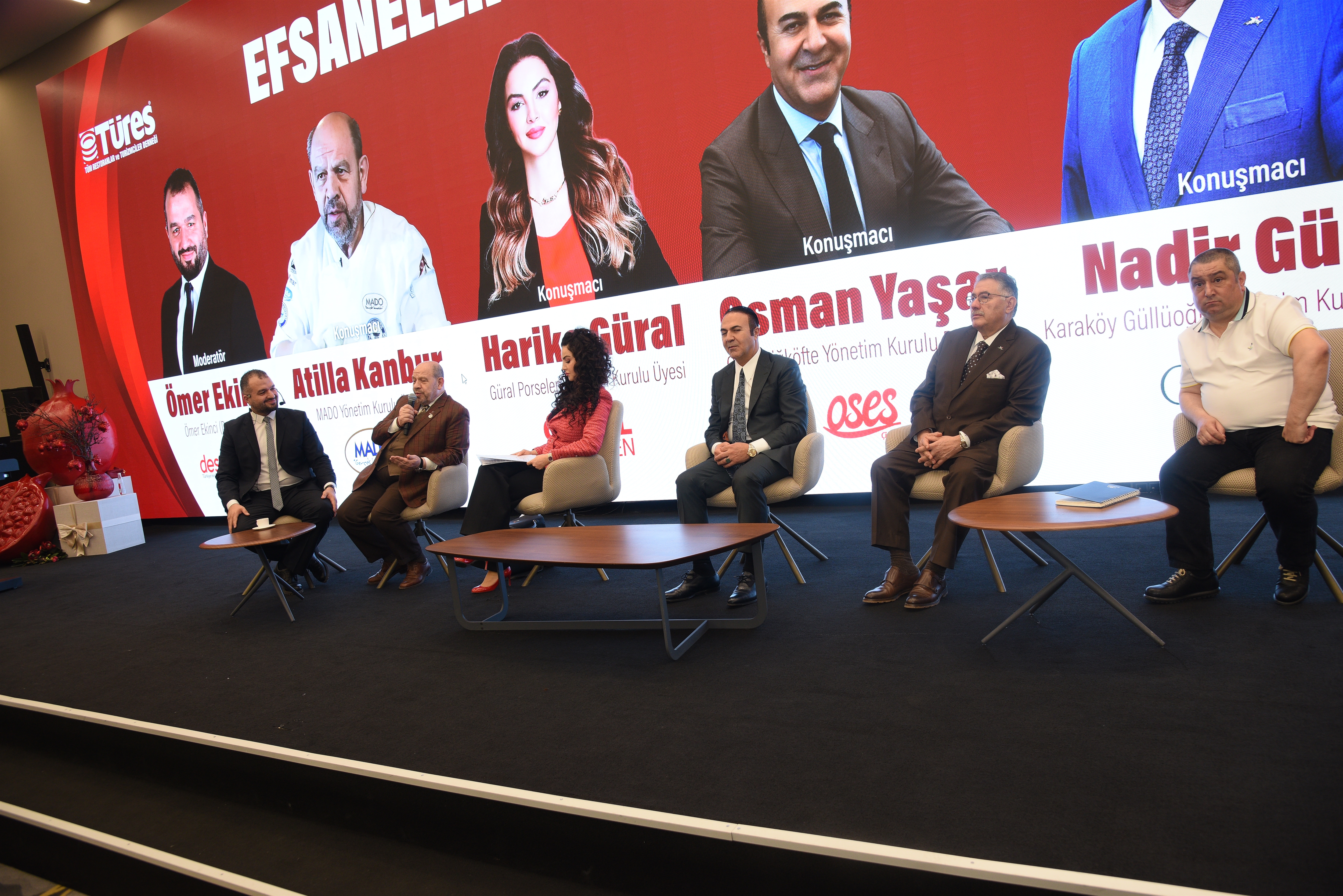 Programda, yeme-içme sektörüne yön veren markaların temsilcileri tek sahnede bir araya gelerek deneyimlerini katılımcılarla paylaştılar. MADO Yönetim Kurulu Üyesi Atilla Kanbur, Güral Porselen Yönetim Kurulu Üyesi Harika Güral, Oses Çiğköfte Yönetim Kurulu Başkanı Osman Yaşar, Karaköy Güllüoğlu Yönetim Kurulu Başkanı Nadir Güllü ve Köfteci Yusuf Yönetim Kurulu Başkanı Yusuf Akkaş, DESNET CEO’su Ömer Ekinci’nin moderatörlüğünde düzenlenen oturumda yeme-içme sektörüne ilişkin görüşlerini dile getirerek gelecek döneme ilişkin öngörülerini katılımcılara aktardılar.